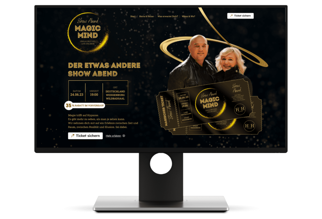 Für die H|H Akademie lokal in Tirol unter den relevanten Keywords auf Seite 1 bei Google. Für die MagicMind Show mit verkaufspsychologischem Webdesign, hochwertigen Fotos & Videos und einer gezielten Marketing Kampagne über 500% ROAS erzielt.